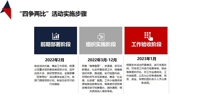 “四爭兩比”活動的順利推進是落實“改進作風(fēng) 提升質(zhì)效”專項工作的重要抓手,也是持續(xù)推動公司穩(wěn)步發(fā)展和實現(xiàn)全年目標(biāo)任務(wù)的重要舉措。下一步,公司經(jīng)營班子要在工作作風(fēng)和質(zhì)效方面樹立真抓實干導(dǎo)向和機制,繼續(xù)發(fā)揮引領(lǐng)帶頭作用,對“四爭兩比”各類項目落地提供專項指導(dǎo)和支持,引導(dǎo)活動不斷深入開展,進一步推進“改進作風(fēng) 提升質(zhì)效”專項行動取得實效?!八臓巸杀取惫ぷ鲗嵤┬〗M要加大力度對各項目進展情況進行檢查督辦,跟進落實,營造“起步就要沖刺”的氛圍。全體員工要鉚足干勁,想方設(shè)法“抓時機、得先機、創(chuàng)良機”,在改進作風(fēng)中重抓落實,在提升質(zhì)效中爭先比優(yōu),推動公司今年目標(biāo)任務(wù)順利達(dá)成。