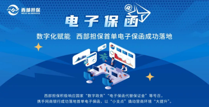 日前,西部擔保與網(wǎng)商銀行合作的首單電子保函業(yè)務成功落地,標志著西部擔保在普惠金融領域數(shù)字化水平邁上新臺階。西部擔保正式進入具有廣闊市場空間的公共資源電子保函市場,對于優(yōu)化公司業(yè)務結構、降低中小微企業(yè)資金占用成本、提高交易效率和便捷性等具有重要意義。